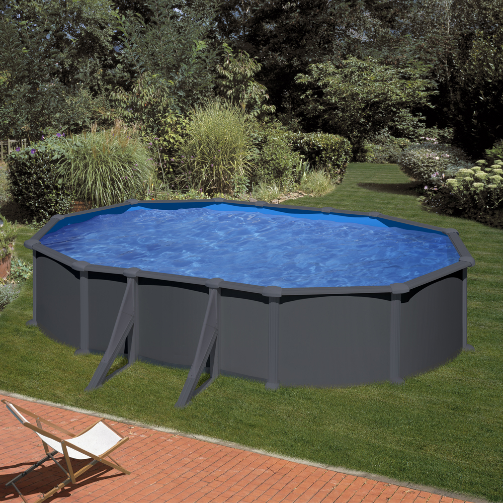 Kit piscine hors sol ovale 6.34 x 3.99 x H.1.22 m - acier gris anthracite