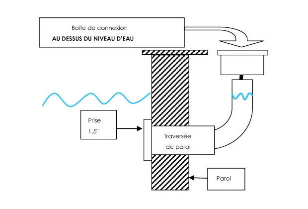 Installation simple, il se visse sur les buses de refoulement et prises balais 1.5", et convient à toutes les piscines (coque, panneaux, enduit, liner)
