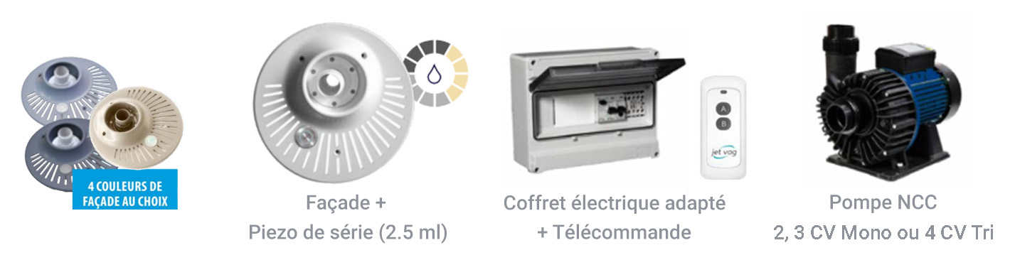 2 CV Mono | 800040 | Blanc (800020), Sable (800020S), Gris clair (800020GF), Gris anthracite (800020GC) | Pompe + Façade + Piezo lumineux + Coffret électrique + Vannes |