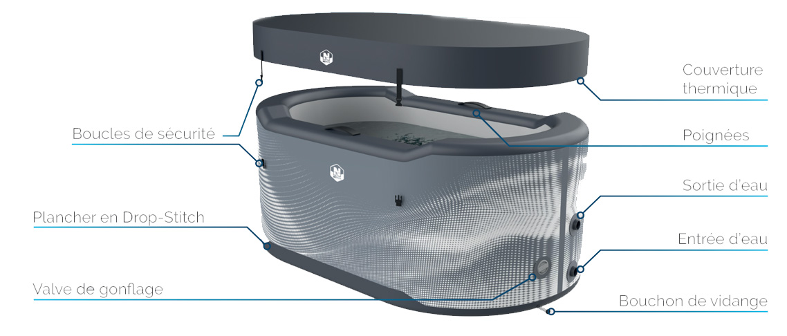 Découvrez l'Ice Bath Järvi de Netspa, un bain de glace innovant conçu pour les avec les athlètes et les amateurs de fitness souhaitant optimiser leur récupération musculaire grâce à la thérapie par le froid. .Fabriqué en technologie Drop-Stitch, ce bassin rigide et léger garantit une isolation thermique optimale et une stabilité exceptionnelle pour une immersion confortable.