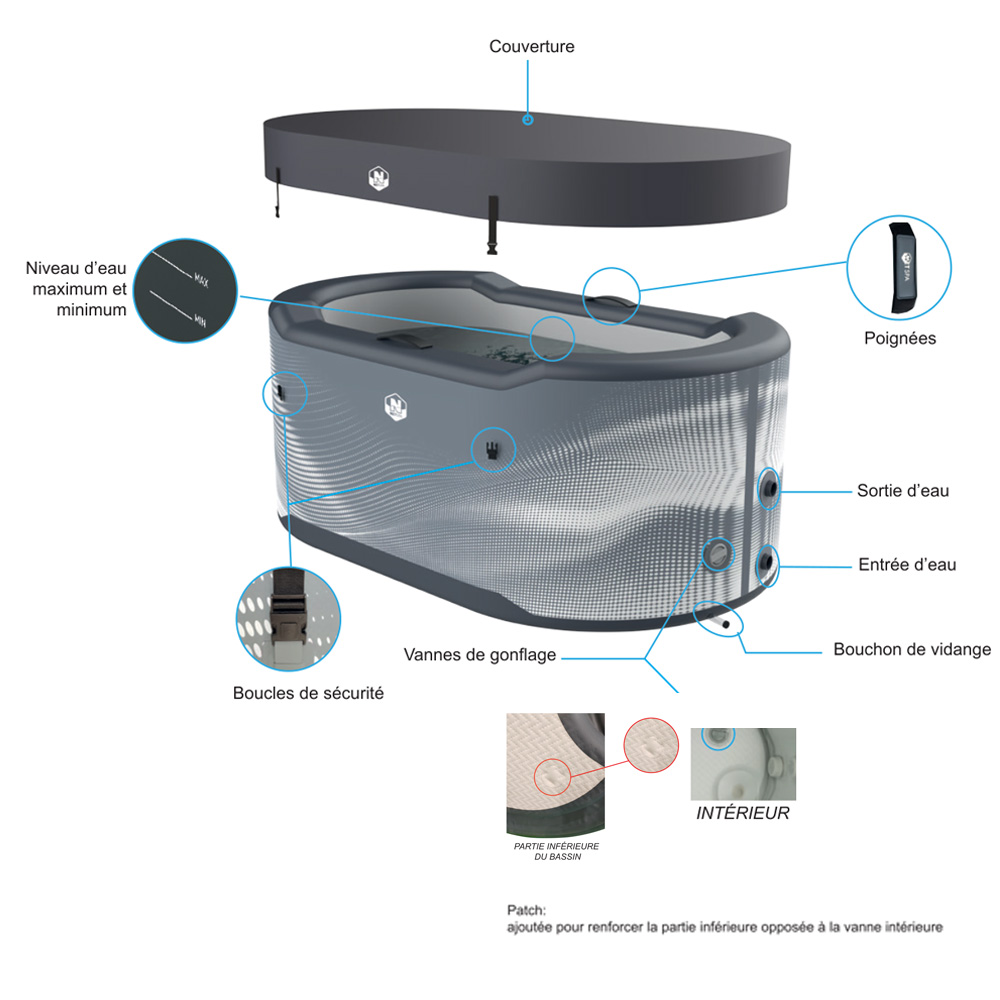 - Bain froid gonflable avec structure Drop-Stitch pour une excellente isolation thermique