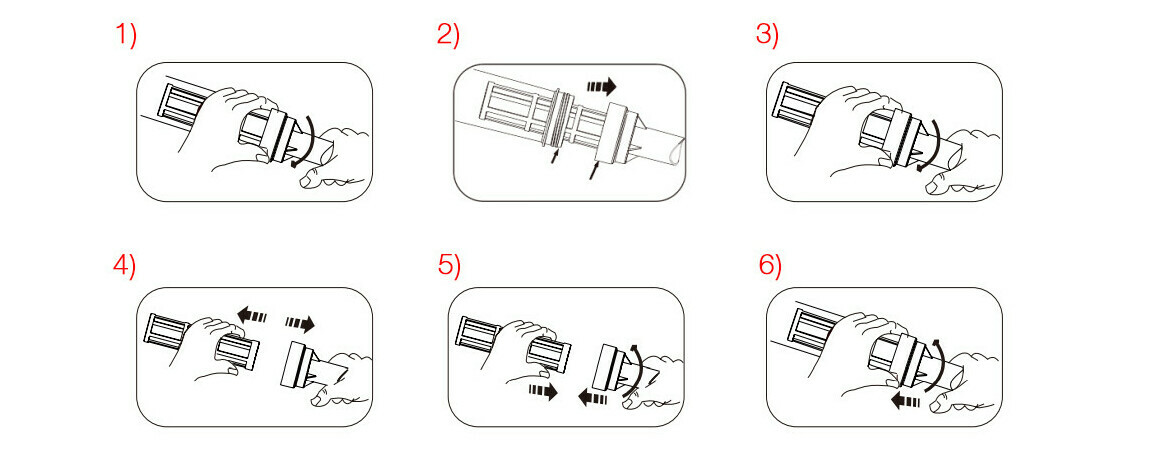 5. Alignez les rainures et glissez le filtre dans l'ensemble. Tournez le soigneusement environ 30º jusqu'à avoir fixé sa position.