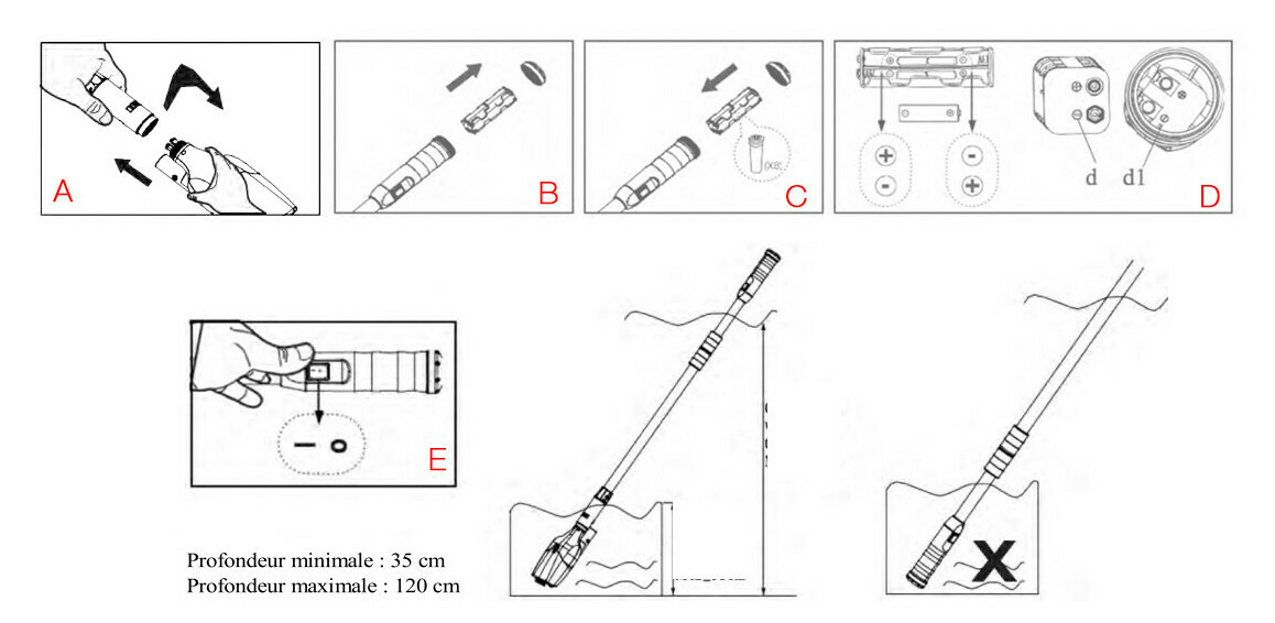 - Respectez la polarisation des piles pour garantir un fonctionnement correct [Figure D].