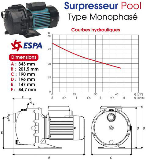 Caractéristiques du Surpresseur Pool (0.75 kw) 1 CV Mono ou Tri
