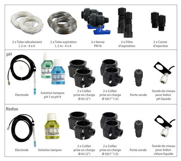 Une fois monté sur votre circuit, cela permettra de traiter votre eau, et d'injecter du produit pH liquide ou du chlore, en fonction des taux analysés.