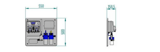 Panneau thermo-formé, composé d'un double système de dosage pH/Redox avec instruments de mesure pH, Redox et température.