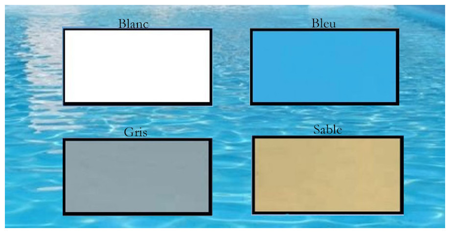 4 teintes sont disponibles pour la peinture Pool Paint Plus en 10 Litres et en 2.5 Litres: