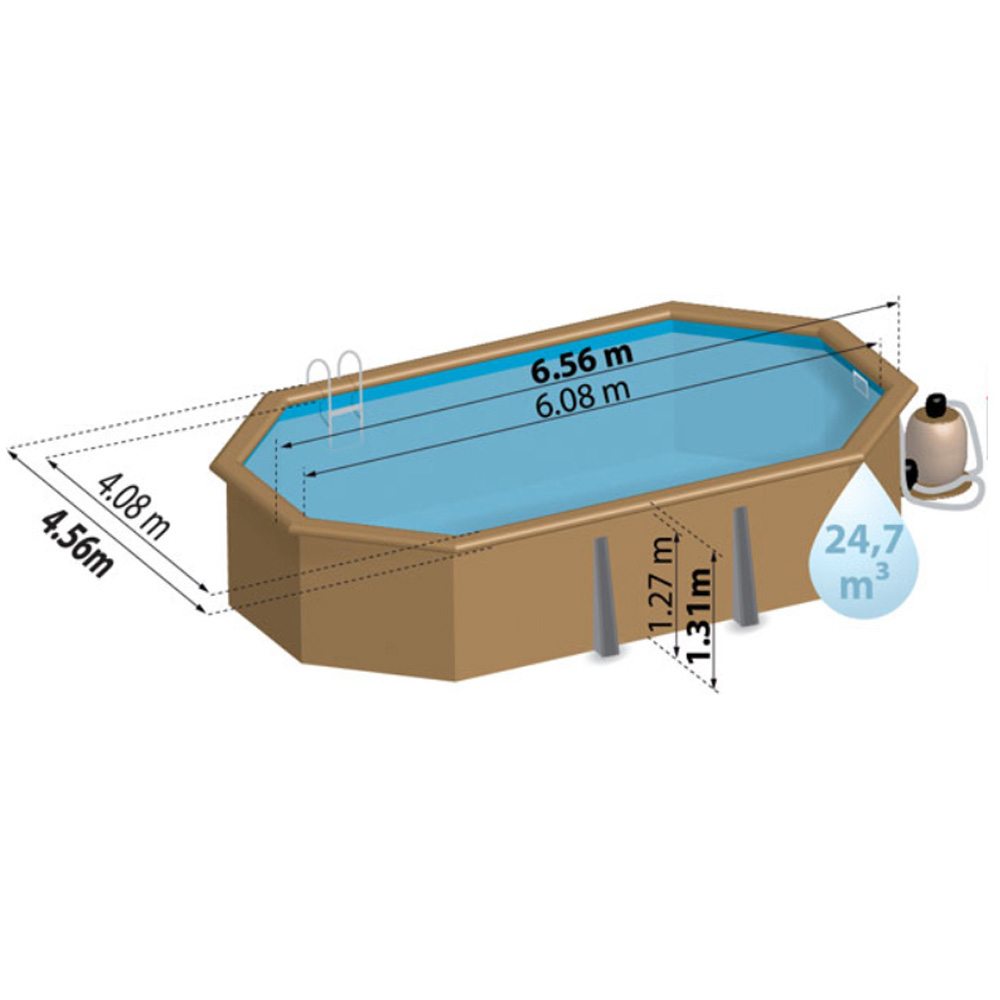 Description Piscine bois Avocado 6.56m x 4.56m x H.1.31m