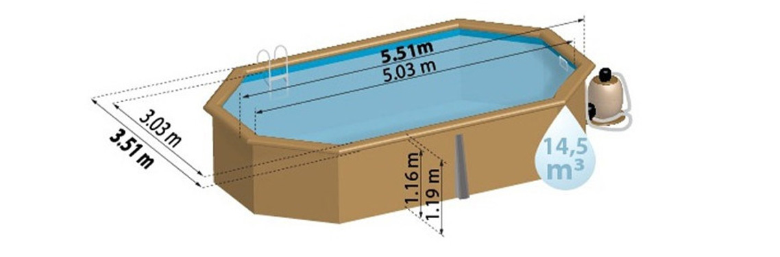 Caractéristiques - Piscine bois Cannelle 2 - 5.35 m x 3.35 m x H.1.17 m