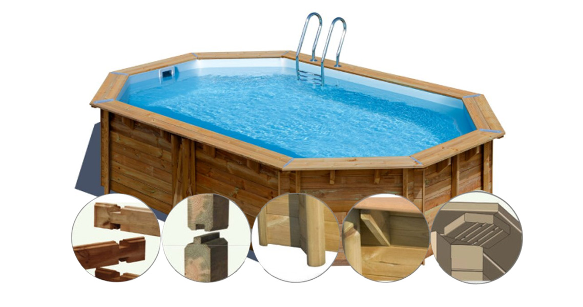 Découvrez la piscine bois ovale Cannelle 2 GRE, un modèle octogonal allongé de 5.35 x 3.35 x 1.17 m idéal pour tous les jardins. Fabriquée en France, elle séduit par sa qualité, sa robustesse et son montage ultra simple.