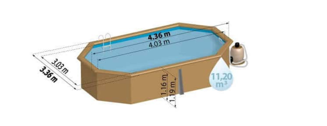 Caractéristiques - Piscine bois Grenade 2 - 4.36 m x 3.36 m x h: 1.17 m