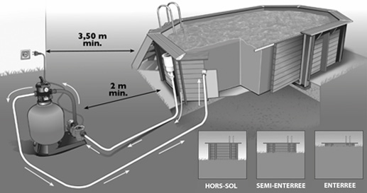 - Semi-enterrée : Sur dalle béton (ATTENTION : Dispositif de sécurité obligatoire : bâche, alarme, barrière...)