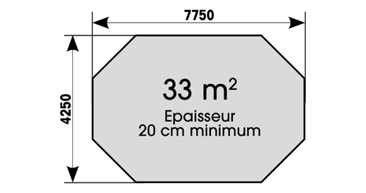 Dimensions dalle béton | 7.75 x 4.25 m | Épaisseur de la dalle béton | 20 cm |