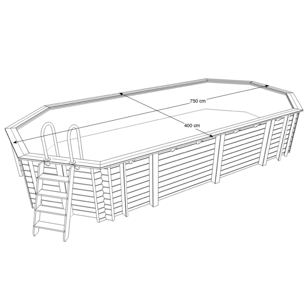 Caractéristiques - Piscine bois octogonale allongée Azura 750 x 400 x H.130 cm