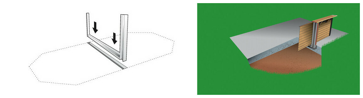 Attention à faire une réservation dans la dalle béton : L 10 x P 18 cm. pour encastrer la base du berceau métallique.