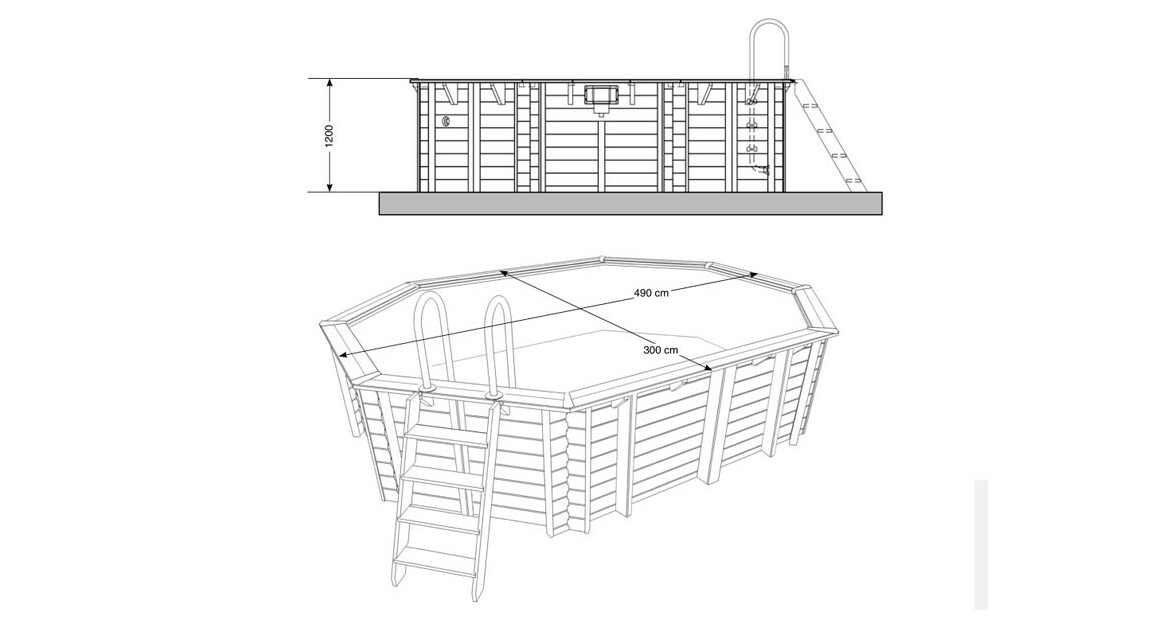 Description Piscine bois octogonale allongée Ubbink Sunwater 490 x 300 x H.120 cm