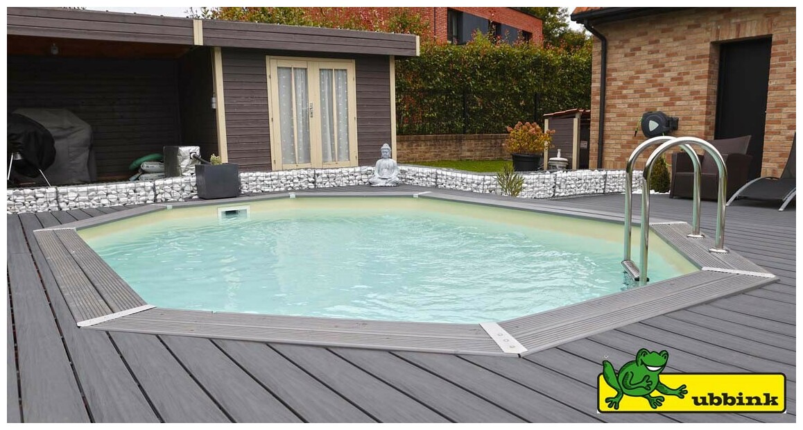 Piscine bois Ubbink octogonale allongée Sunwater 4.90 x 3.00 x H.1.20 m