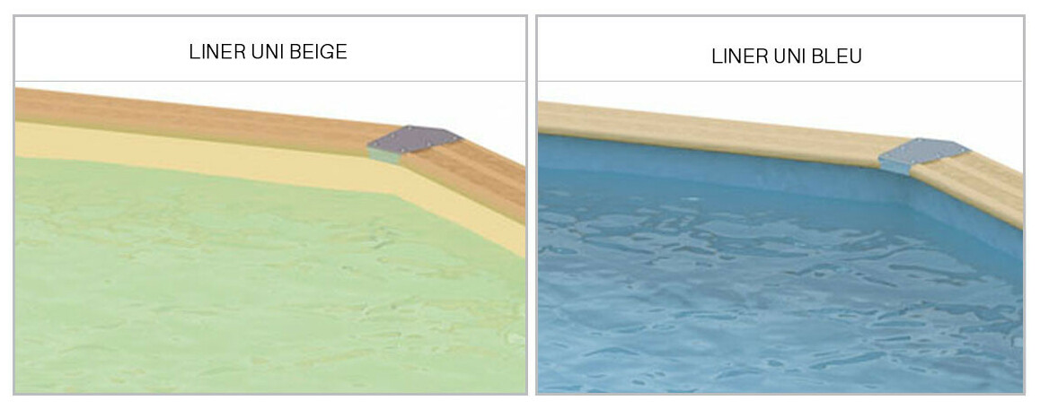La piscine bois Sunwater se décline selon vos envies en 2 coloris unis de liner : bleu adriatique ou beige.