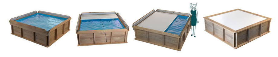- Les margelles du bassin sont articulées, et se relèvent avant de dérouler ou d'enrouler la couverture.