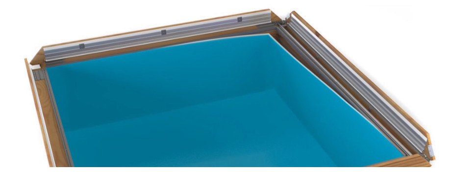 - Colis 2 : L'ensemble des éléments en bois de la structure, les margelles aluminium, les profilés PVC et l’enrouleur monté avec la couverture d’hiver et sa barre de tirage.