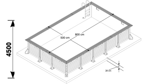 Caractéristiques - Piscine bois rectangle Linea 800 x 500 x H.140 cm