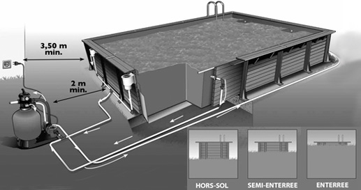 - Semi-enterrée : Sur dalle béton (ATTENTION : Dispositif de sécurité obligatoire : bâche, alarme, barrière...)