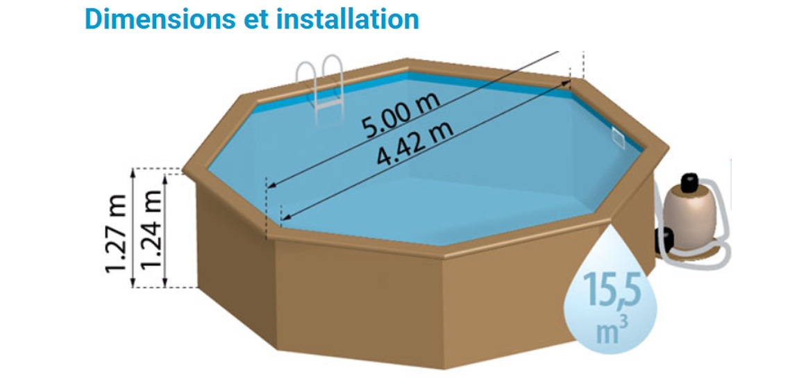 Dimensions extérieures | Ø 5.00 x 1.27 m |
