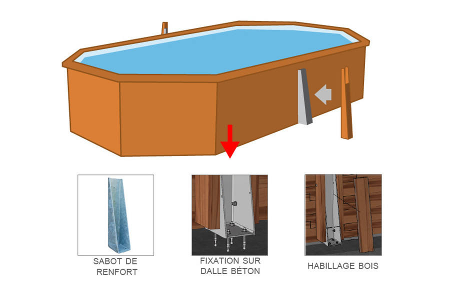 Les longueurs de votre piscine sont renforcées grâce à des sabots métalliques, pour une meilleure tenue de la structure.