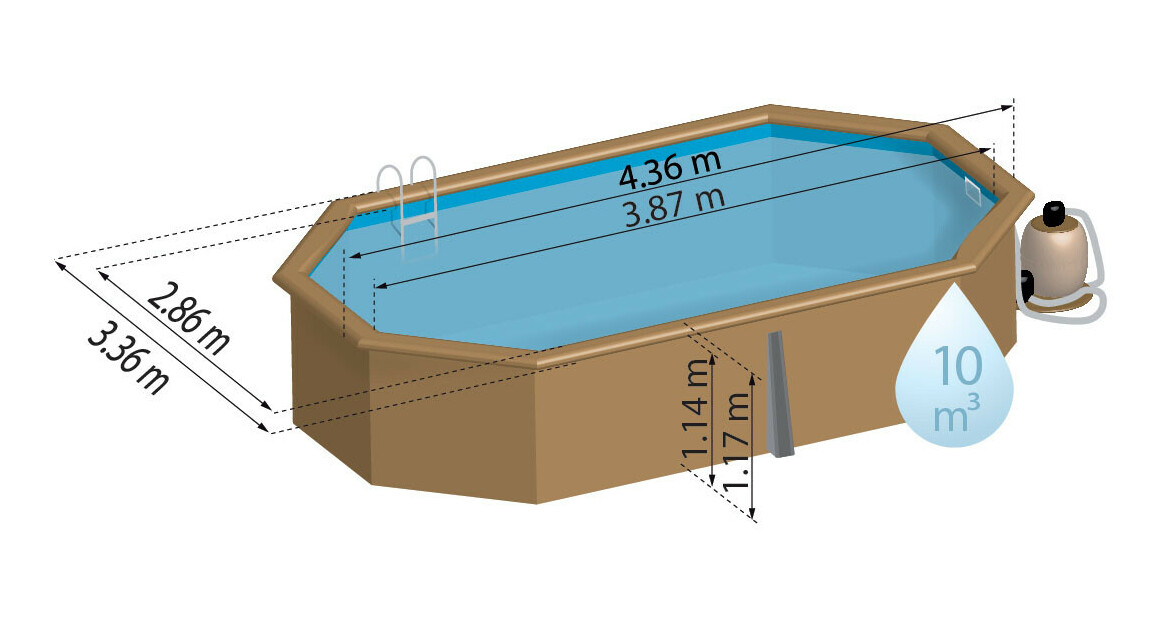 Description Piscine bois Woodfirst octogonale allongée 436 x 336 x 117 cm