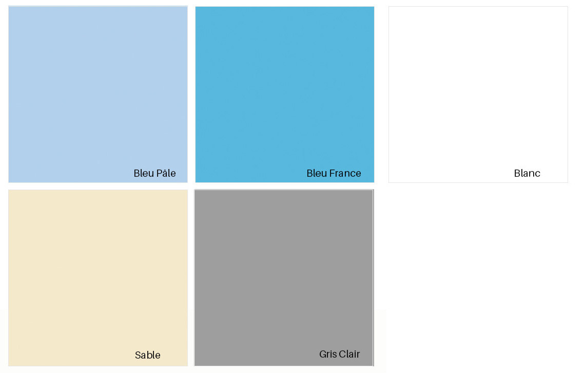Liner uni 85/100 ème : Bleu pâle, bleu France, sable, blanc