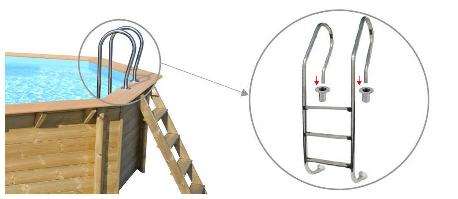 - Echelle bois à l'extérieur du bassin.