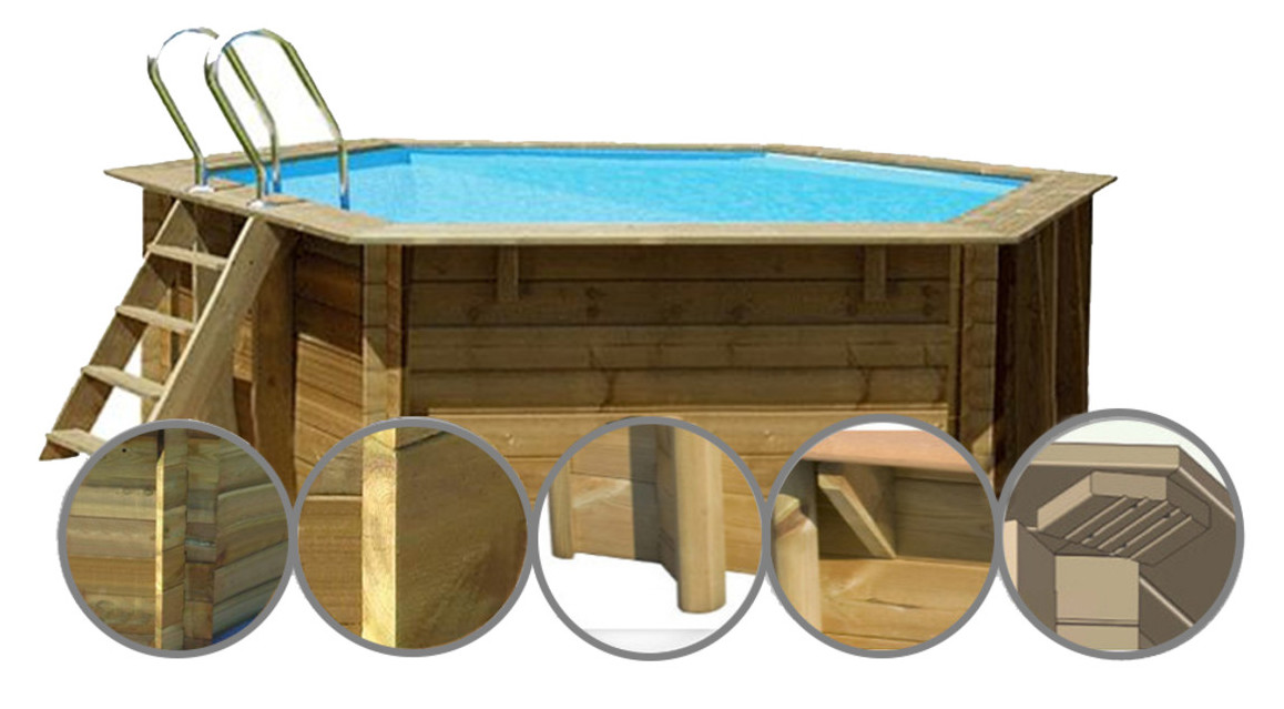 - Nous vous offrons La garantie d'une piscine bois réalisée à partir de matériaux nobles, tels que le bois en Pin Sylvestre traité en autoclave, robuste et naturellement imputrescibles.