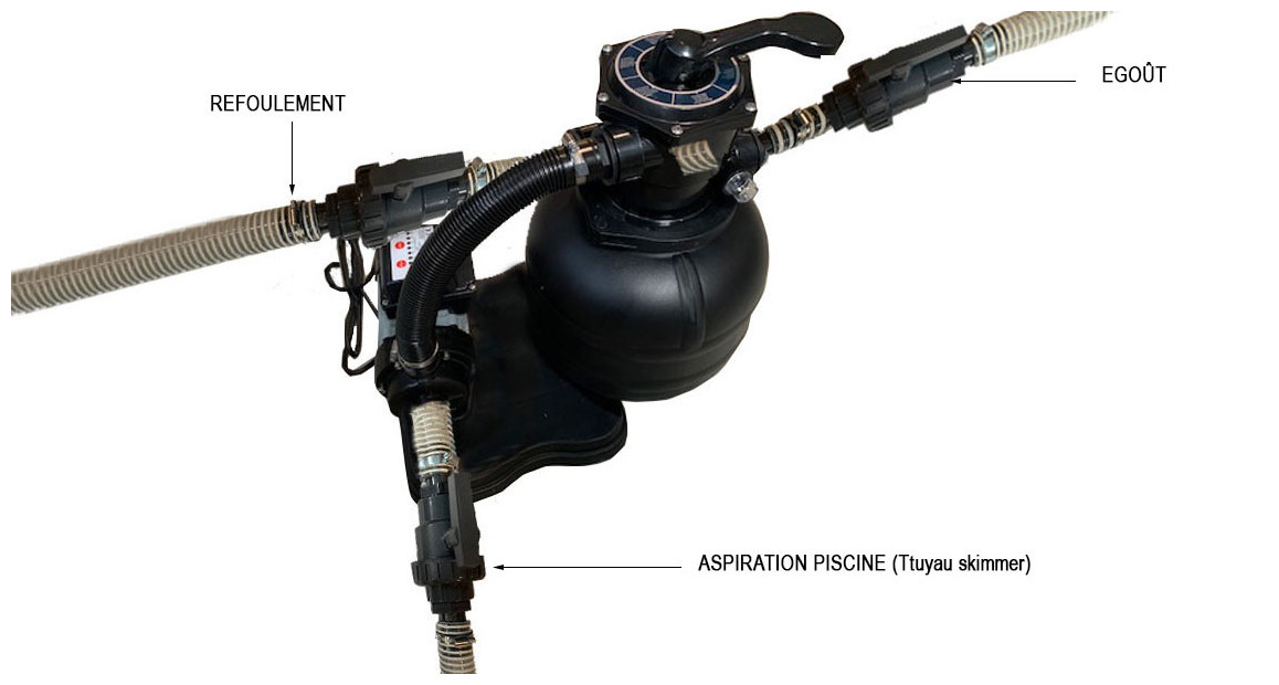 - Un Groupe de Filtration complet : filtre à sable et pompe, skimmer et refoulement parfaitement adaptés à son volume et à sa filtration.