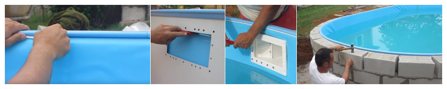 - Emplacements découpés skimmer, prise balai, buse de refoulement.