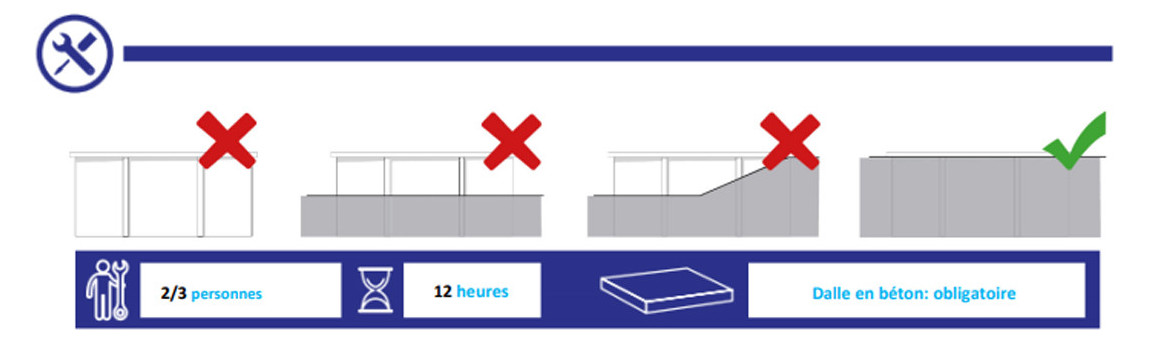 - La construction d'une dalle béton de 15 cm d'épaisseur est impérative