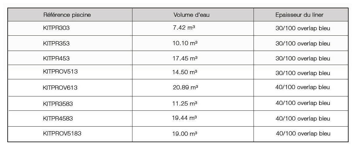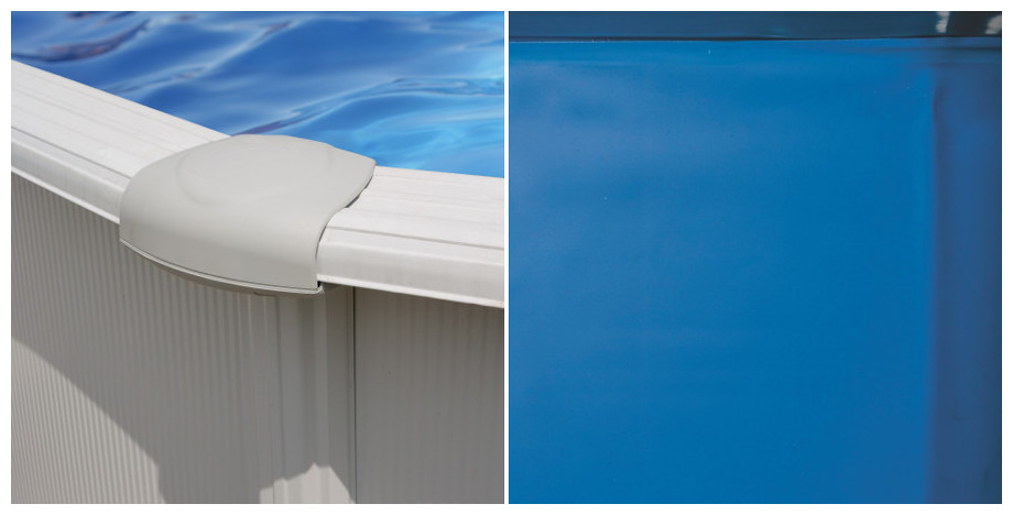 Piscine hors-sol en kit GRE, équipement inclus et montage rapide. Structure acier traité anti-corrosion, finition laquage blanc. Protections moulées et renforts verticaux acier, bassins allongés équipés de jambes de force. Huit dimensions disponibles(hauteur 120 cm : Ø303 à 610x375 cm et hauteur 132 cm : 350 à 500x350 cm). Accessoires inclus : liner bleu, épaisseur 30/100e ou 40/100e suivant le bassin choisi, fixation overlap ; épurateur à cartouche 3.8 m³/h ; échelle de sécurité amovible 2x3 marches (plateforme pour hauteur 132 cm).