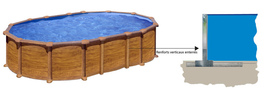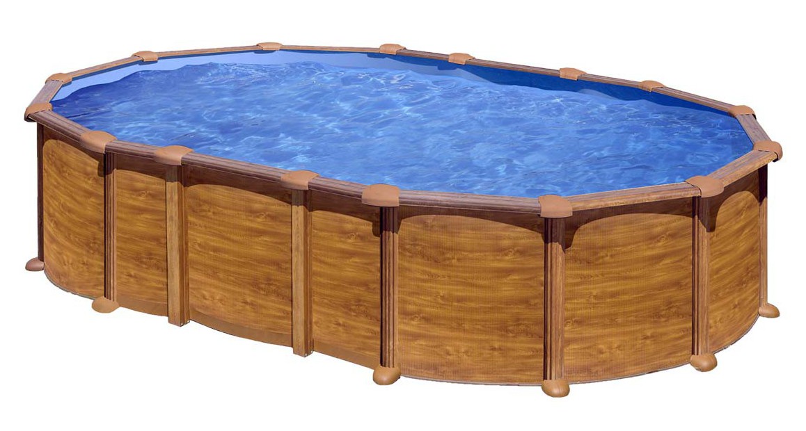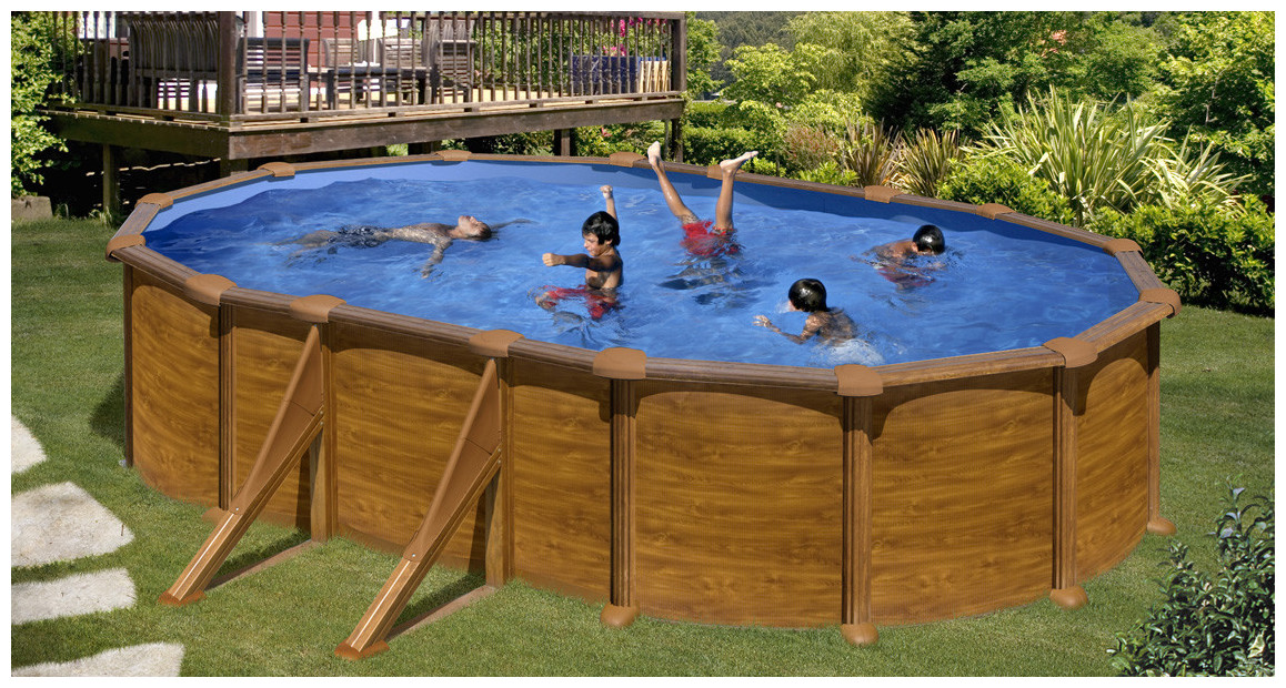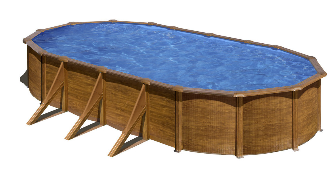 Kit piscine hors-sol Mauritius acier aspect bois ovale - 610 x 375 x H132 cm