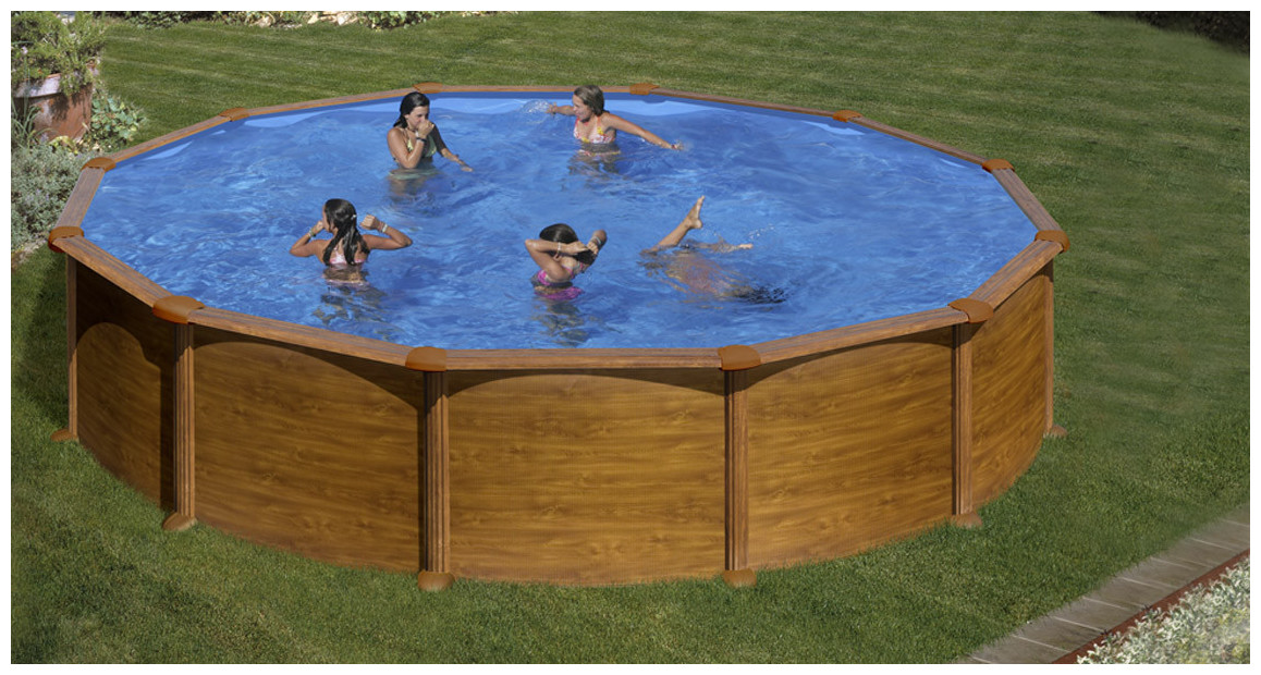 GRE Piscine Acier imitation bois - Gammes Mauritius & Amazonia, hauteur 132 cm