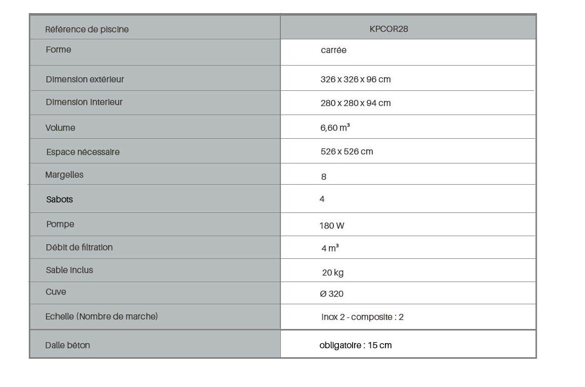 Piscine Avant Garde composite carrée 3.26 m x 3.26 m x H.0.96 m