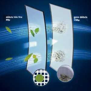 Filtration double niveau : Retient les gros débris et particules fines pour une eau claire. 60 et 150 µm