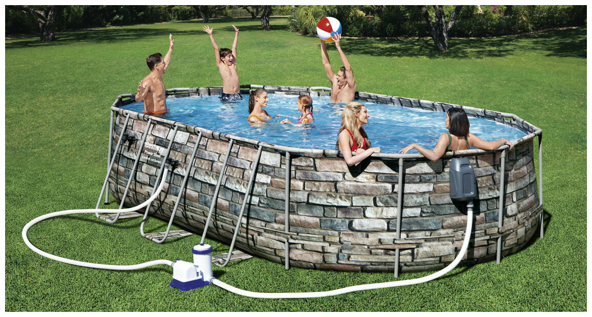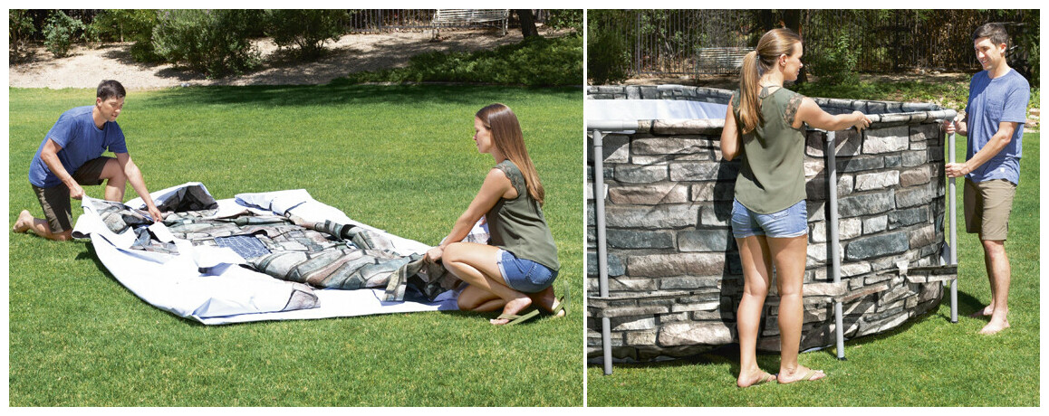 Kit piscine tubulaire Bestway, un motif pierre très bien imité !