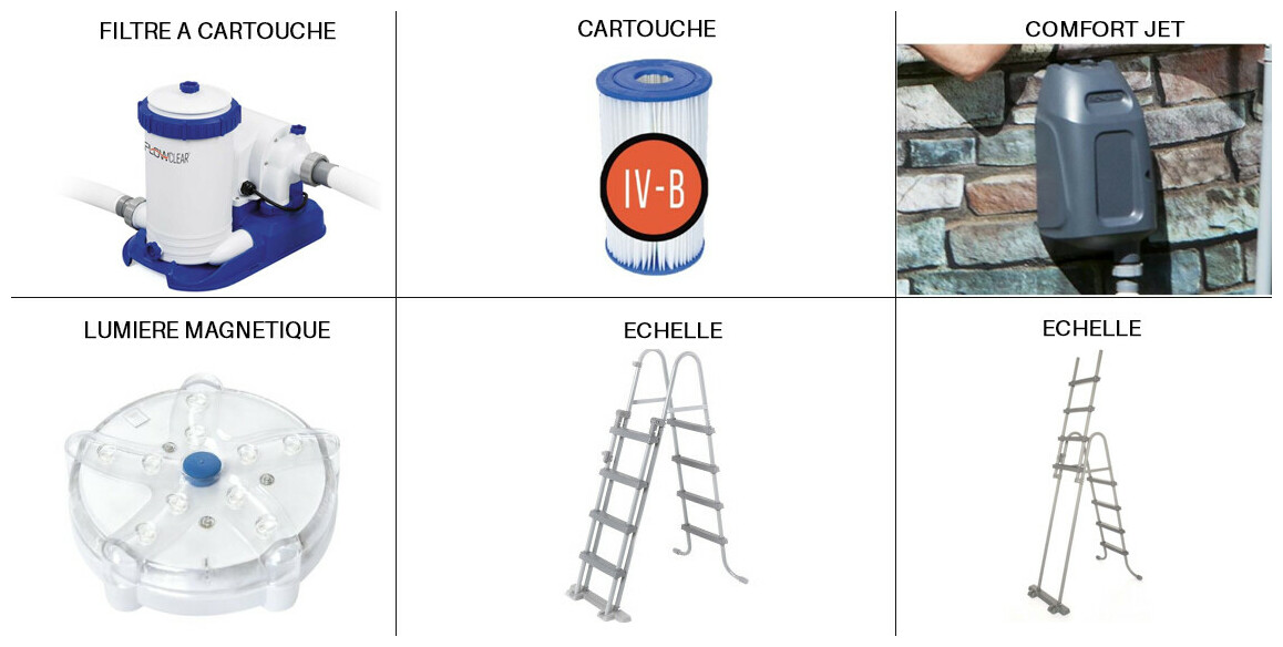 Plus vrai que nature, ce kit piscine tubulaire Bestway Power Steel aspect pierres, s'assemble facilement et en 30 minutes, vous profiterez des joies de la baignade ! Alliant la résistance et l'esthétisme, avec renforts en U, elle comprend tout le matériel pour une bonne mise en place : structure avec renfort en U, liner tritech impression mosaïque, filtration à cartouche, échelle d'accès et pour un confort maximum : Une lumière magnétique et un jet de massage !