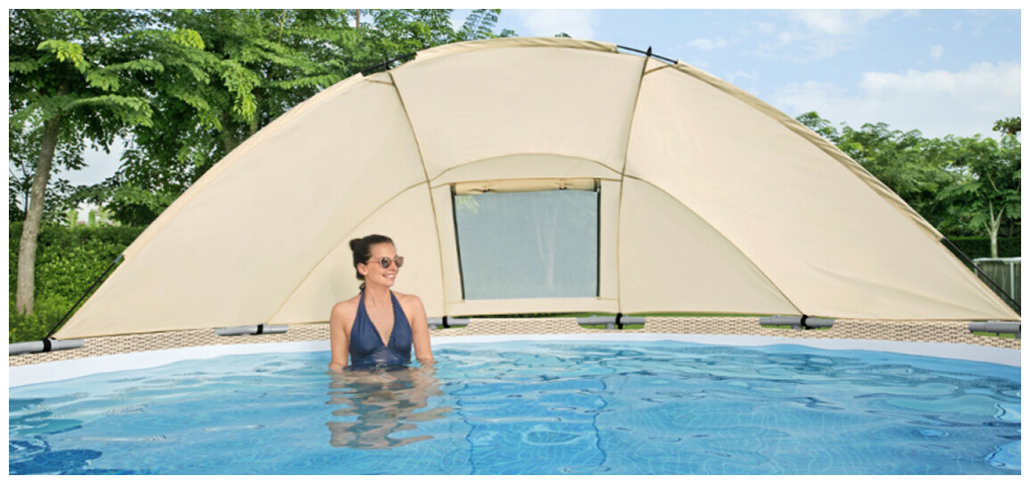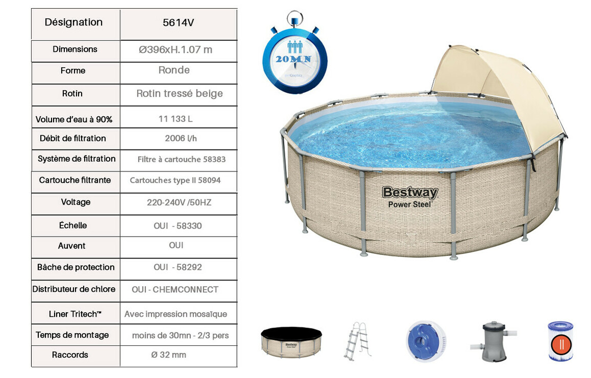 Piscine tubulaire ronde Power Steel Ø 3.96 x H.1.07 m + Auvent - Rotin beige