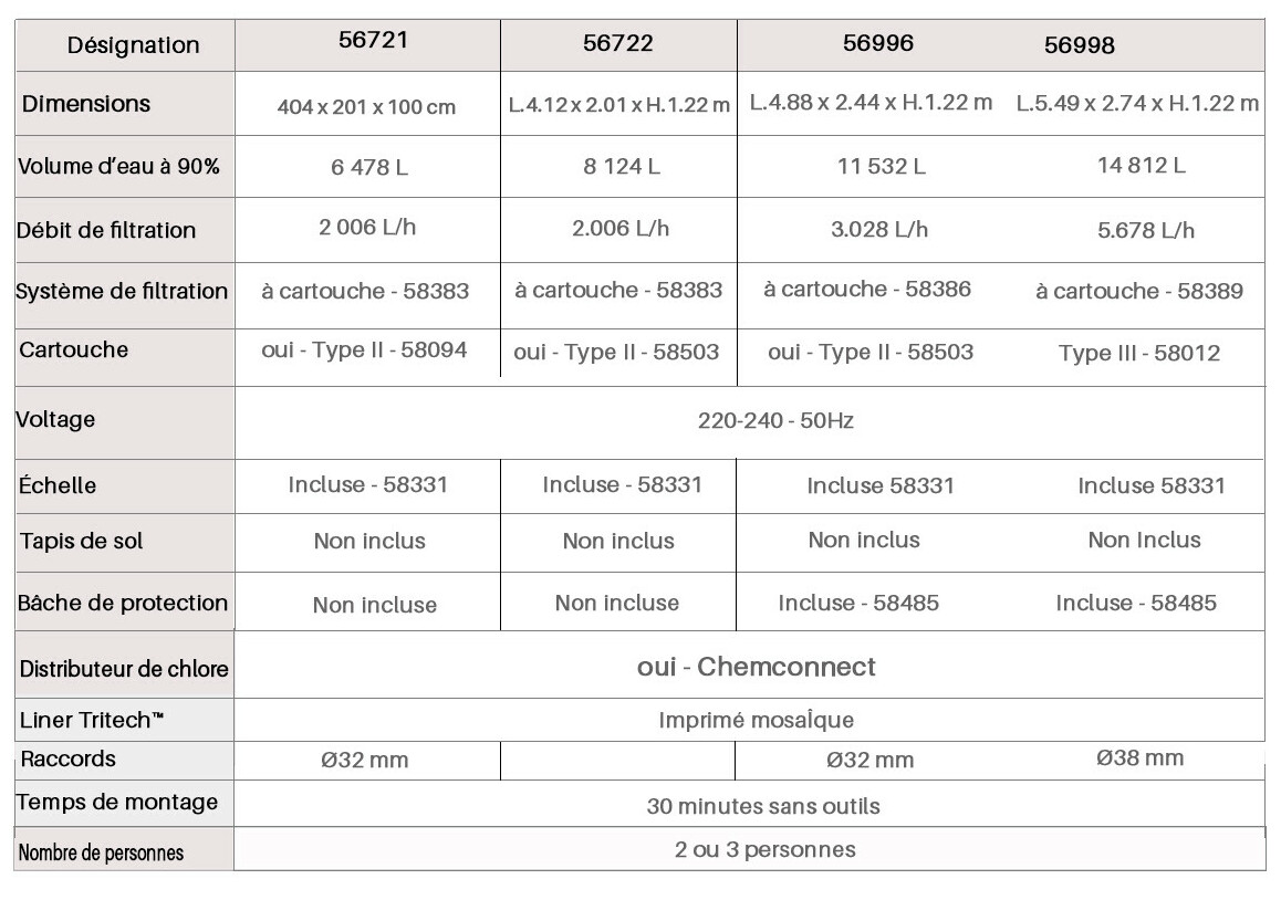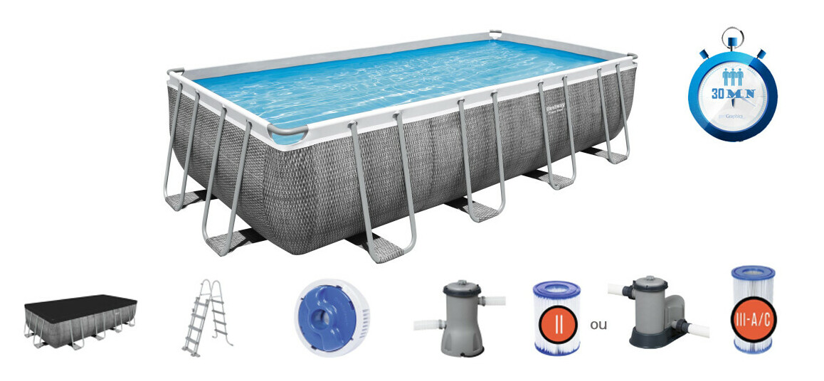 Piscine tubulaire rectangle Power Steel 5.49 x 2.74 x H.1.22 m - motif rotin gris