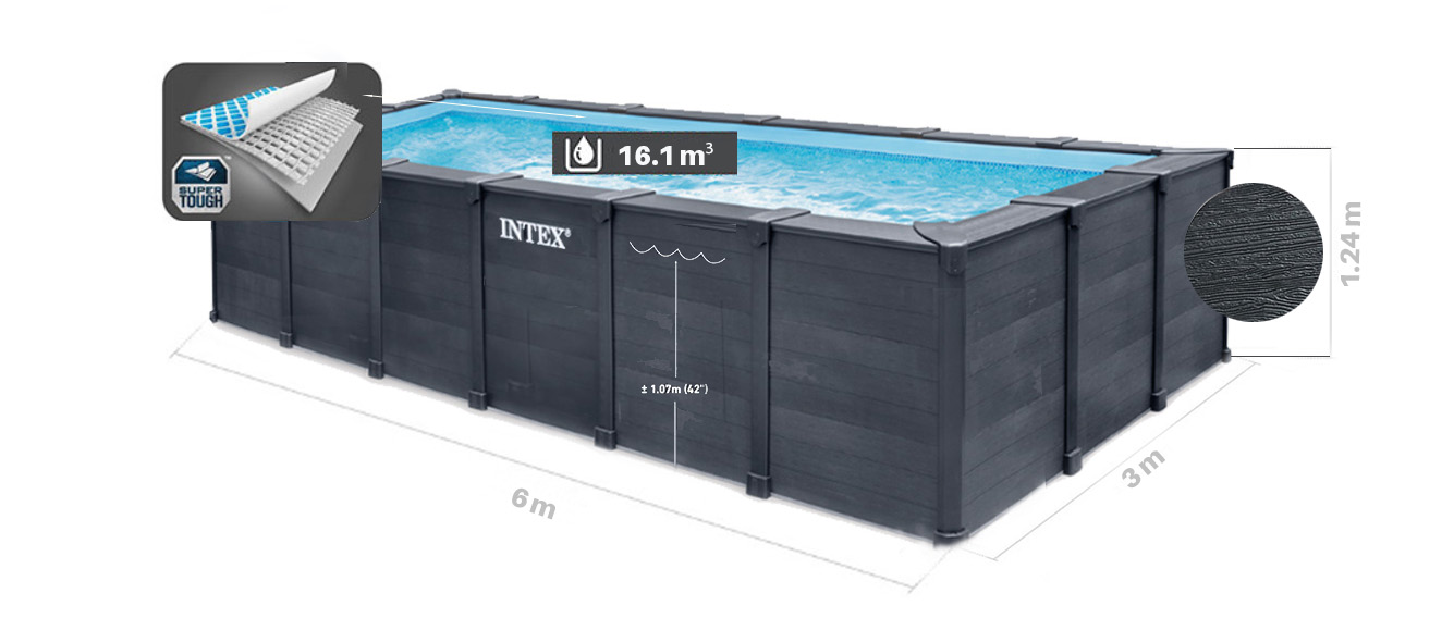 Caractéristiques - Piscine tubulaire rectangle Graphite Intex 6.00 x 3.00 x 1.24 m