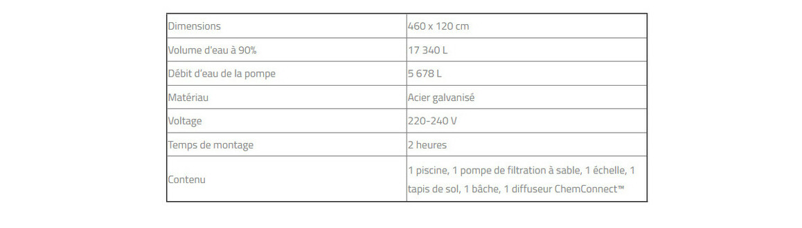 Avec ses dimensions de 360 x 120 cm, ce modèle s'intègre parfaitement dans les petits jardins. Vos enfants pourront s'amuser, éclabousser, se détendre sur un matelas gonflable et même apprendre à nager !