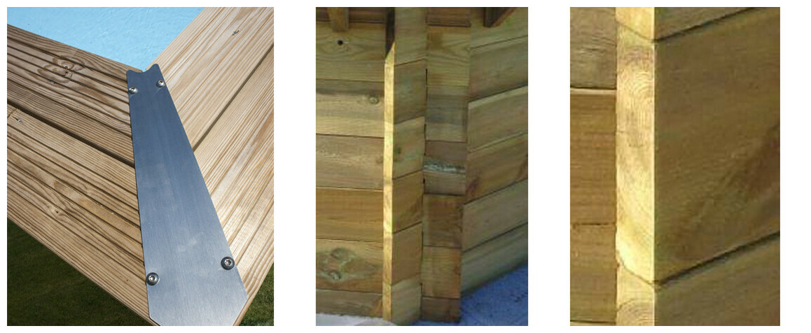 La structure de la piscine bois woodfirst Original 4,20 m x 2,70 m x H: 1,17 m possède un système d'emboîtement plat sur plat/emboîtement aux extrémités ce qui facilite la phase de montage de la structure bois.