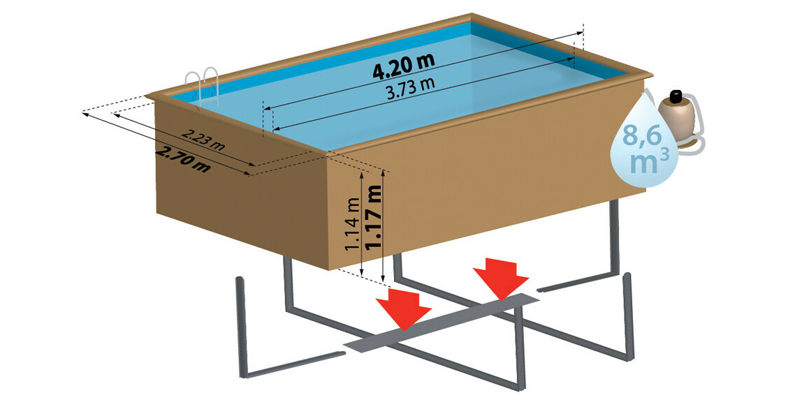 Votre piscine rectangulaire Marbella 2 est renforcée par des jambes de forces Omega.