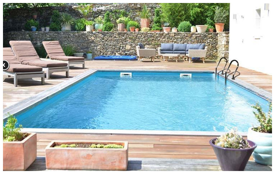 En photo, présentation de la piscine rectangle enterrée et hors sol.