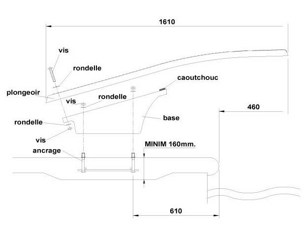 c - Poser le plongeoir sur les ressorts, et visser le tout fermement.